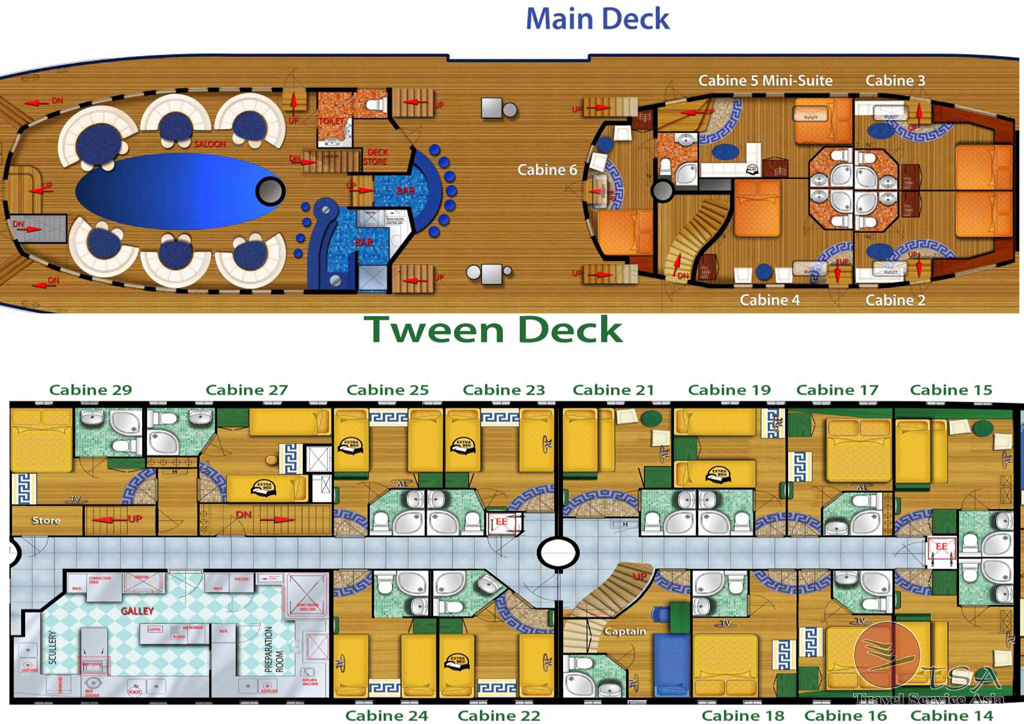 Premium Kabine Nr. 2 + 3 Maindeck mit Doppelbett