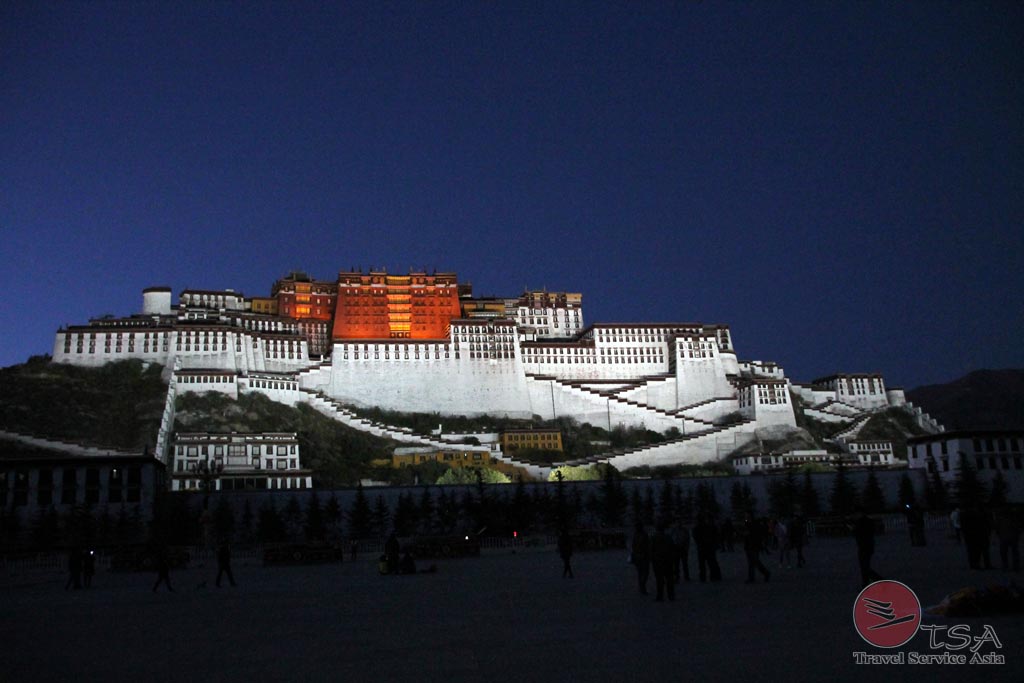 Der Potala-Palast in Lhasa bei Nacht