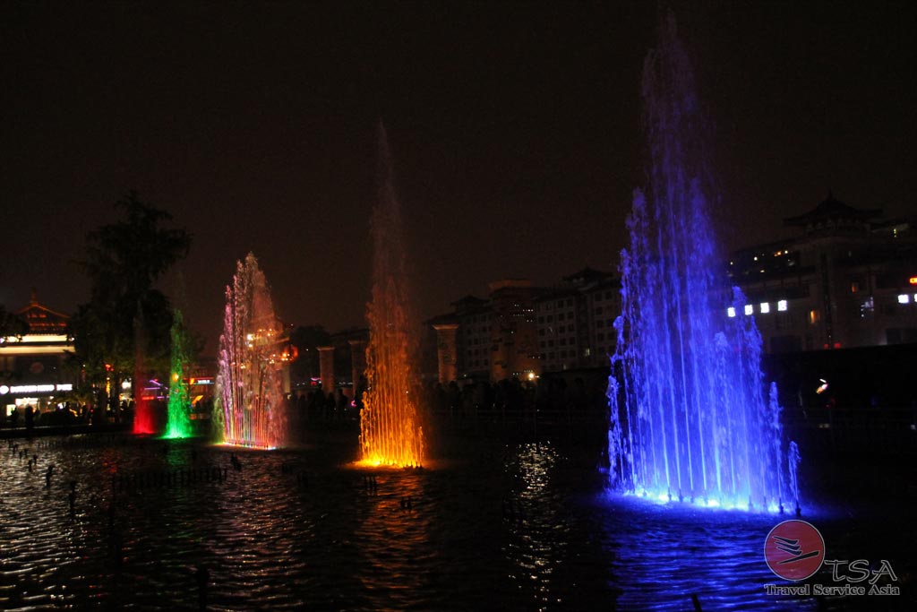 Am nächsten Tag Terrakotta-Armee und Große Wildganspagode. Den Abend ließen wir mit einer absolut empfehlenswerten Wasser-, Klang- und Lichtshow auf dem