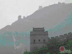 Die Große Chinesische Mauer im Dunst aus dem Zug gesehen