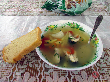 Ergebnis der Kochkünste unseres Fremdenführers Alexander: Fischsuppe Ucha