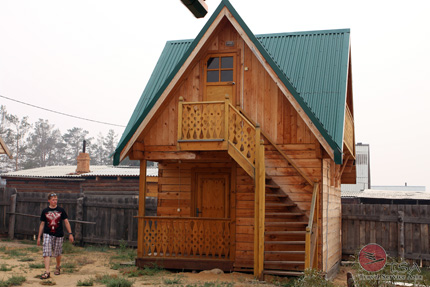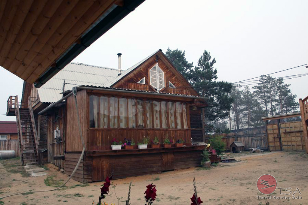 Angekommen auf der Insel Olchon, wurden wir schon von einem anderen Fahrer, Valerij, begrüßt. Er fuhr uns zu unserer Unterkunft nach Chuschir. Wir wurden samt unserem Gepäck mächtig durchgeschüttelt, und die Müdigkeit war erst einmal weg! Teerstraße gibt es nämlich keine. Wir fuhren auf Schotterpisten und manche Autos suchten sich einen Weg neben der Straße. Wir fühlten uns wie in einer anderen Welt und ab und zu erspähten wir einen Blick auf den Baikalsee. Erschöpft und froh, nach ca. 24 Stunden endlich am Ziel zu sein, bezogen wir unser Quartier bei Igor und Vera Schramko. Nach einem kleinen Begrüßungs-Imbiss gingen wir Chuschir erkunden. Das leckere Abendessen und die Banja ließen uns auch bald auf den harten Betten einschlafen.