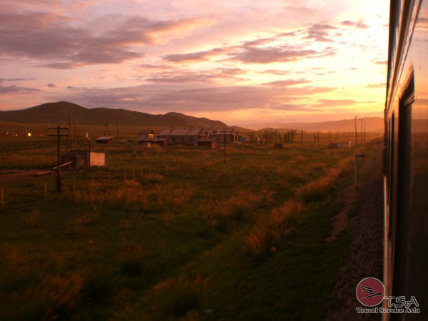 Positiv war, dass wir so am Morgengrauen zu Fotomöglichkeiten kamen. Leider hatte ich nicht vermutet, dass wir so lange am See fahren würden und schlief ein. Wie beschrieben wurde die Landschaft erst hier abwechslungsreich und wirklich neu (während der Transsib-Fahrt waren es häufig die Taiga-Wälder). Der Aufenthalt an der Grenze war wie erwartet länger und wer rechtzeitig noch auf der Toilette war, hat ihn auch gut überstanden. Die besten Fotos der gesamten Reise habe ich am frühen Morgen kurz vor Ulaanbataar aus dem Zug schießen können. Da ich meine Uhr eine Stunde "zu viel" umgestellt hatte, nutzte ich die Zeit, den wundeschönen Sonnenaufgang entlang des Zuges in den rötlichen Sänden der mongolischen Steppe festzuhalten. In Ulaanbataar empfing uns zum ersten Mal eine Führerin, sehr jung und in perfektem Deutsch. Sie beantwortete uns alle Fragen beim Frühstück, rund um das Kloster Gandan und das mongolische Leben und wirkte sehr kompetent. Auch sonst kamen wir gut ins Gespräch und es war schade, dass sie uns so abrupt im Jurtecamp in Terelj wieder verließ. Die Jurten dort entsprachen unseren Vorstellungen und die Taschenlampe erwiesen sich als sehr nützlich. Das teils kalte Wasser in der Waschhütte machte mir nichts aus. Das Essen war leider sehr westlich gehalten mit nur einigen mongolischen Einschlägen. Allerdings war es sehr gut, nur häufig zu wenig (gerade wenn man Wandertouren unternommen hat), nicht nur für die Männer. Trotz einiger Aktivität wie wandern, reiten, joggen, hatte ich aber das Gefühl, dass die gut zwei Tage dort ausreichend waren. Mit dem Fahrer ging es dann zurück nach Ulaanbataar. Nur durch unser Beharren verhinderten wir, dass wir bei den Wohnungen falsch zugeteilt wurden. Leider sprach der Fahrer kein Englisch, hat sich aber umgehend telefonisch informiert und die Sache geklärt. Für uns war wieder Gast"familie" angesagt, diesmal bei einem Paar in den frühen/ mittleren 20-ern. Zwei der drei Zimmer der Wohnung haben sie vermietet. Sie traten eigentlich kaum in Kontakt zu uns, hatten aber alles professionell organisiert: Stadtkarte an der Wand, kleinen Handzettel mit Bus und Adresse und jeden Morgen ein gutes Frühstück, was ins Zimmer gebracht wurde. Die Wohnung war klein, aber in Ordnung und nur ca. 2 km vom Zentrum entfernt (direkt mit dem Bus zu erreichen).