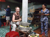 Zurück an Land radelten wir über schmale Wege durch das Mekong Delta vorbei an Gärten, Märkten und Schulen. Am Abend erreichten wir unsere Gastfamilie, wo wir über Nacht blieben. Nach herzlicher Begrüßung kochten wir gemeinsam ein leckeres Abendessen.