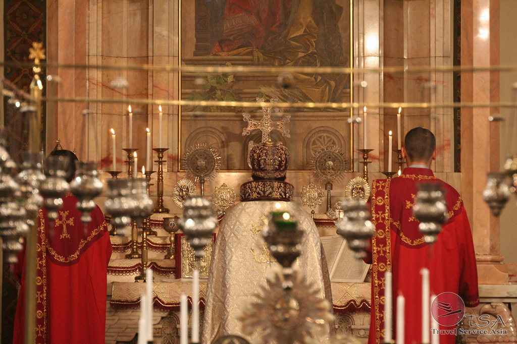 Besichtigung der Hauptkathedrale und Spaziergang durch den mit schönen Kreuzsteinen gestalteten Park.